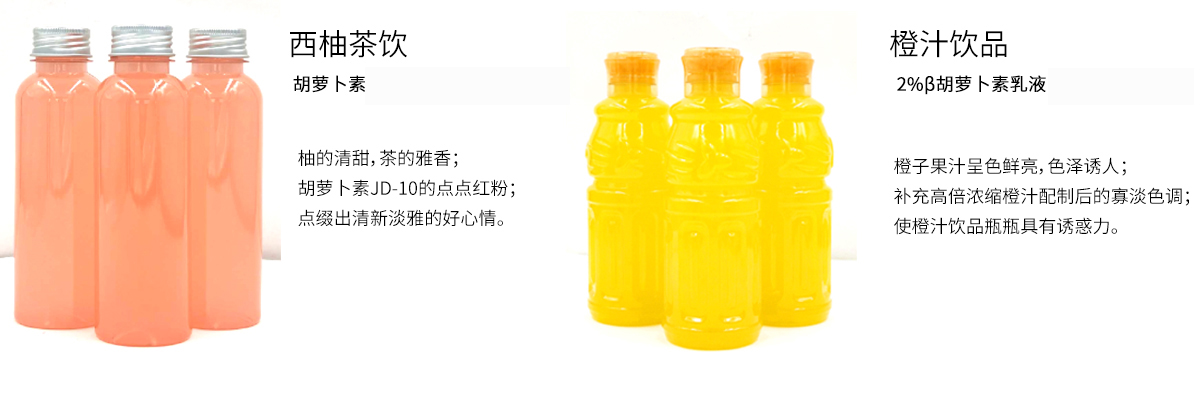It can provide liquid and powder two forms, which can make solid beverage powder evenly colored; resistant to high temperature sterilization, soft and bright, stable color; non-staining bottle, no oil ring, stable color, long shelf life, bright color, high temperature resistance, good stability.